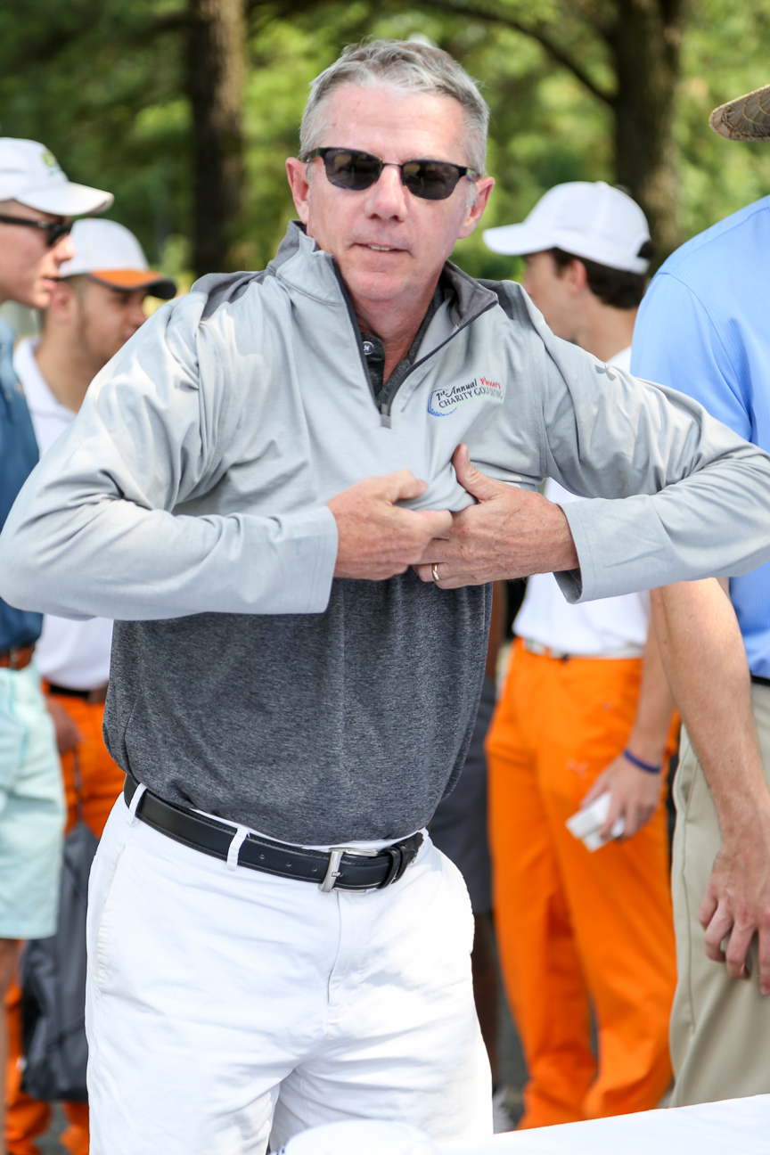 Registration began at 10 am with a shotgun start at noon. Guests checked in, received all their giveaways and then enjoyed a breakfast buffet along with a free putting contest. All foursomes were given a mobile scoring device with the app VPAR on it. This app helped for some friendly competition amongst players, enabling them to automatically see their standings against the other foursomes. Large monitors were placed throughout the venue to help everyone see the leader-board. On the course, there were a couple hole in one car contests! If the golfer got a hole in one, they could win a Mercedes, Cadillac, Chevrolet or Audi! When golfers came around the turn, they grabbed a boxed lunch along with a beer from our 1974 VW Kegerator Van.